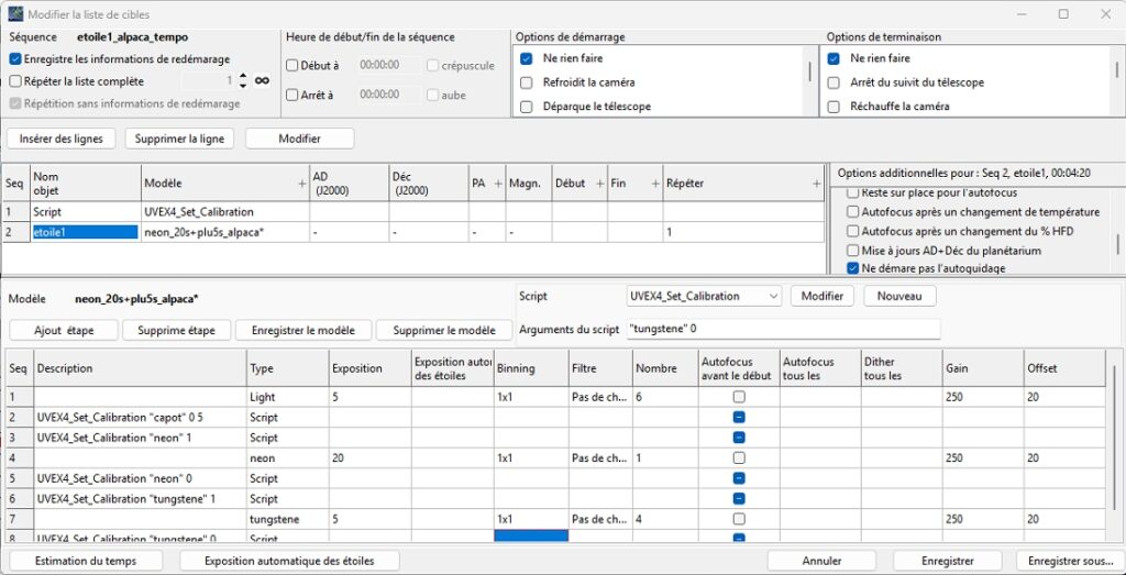 Depuis CCDCiel lancer le script UVEX4_Set_Calibration